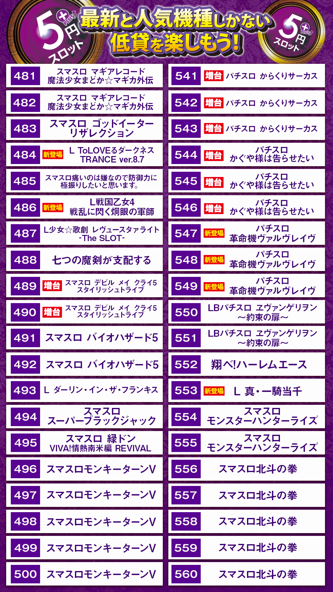 11/5:5週新台入替(予定)